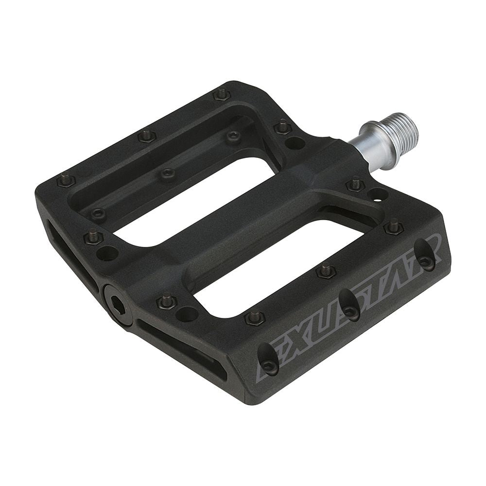Pedali 110x105mm E-PB71 MTB in Termoplastica Nero - Attacco FLAT Perno in Cr-Mo su Cuscinetti 10 Pin Peso: 361gr/coppia EXUSTAR